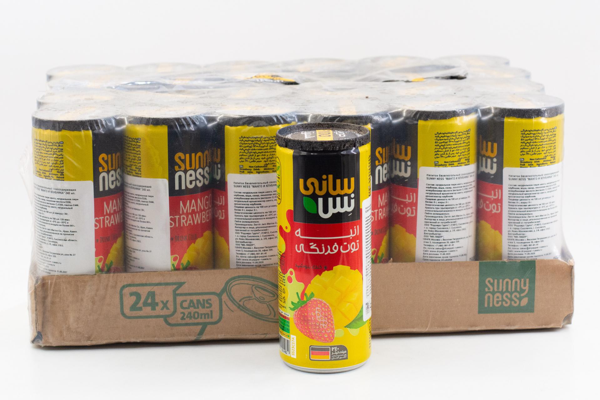 Напиток безалкогольный сокосодержащий Sunny Ness Манго и клубника (Иран) 240мл ж/б0,00 руб. за штуку (в упак. 24 шт.) |
