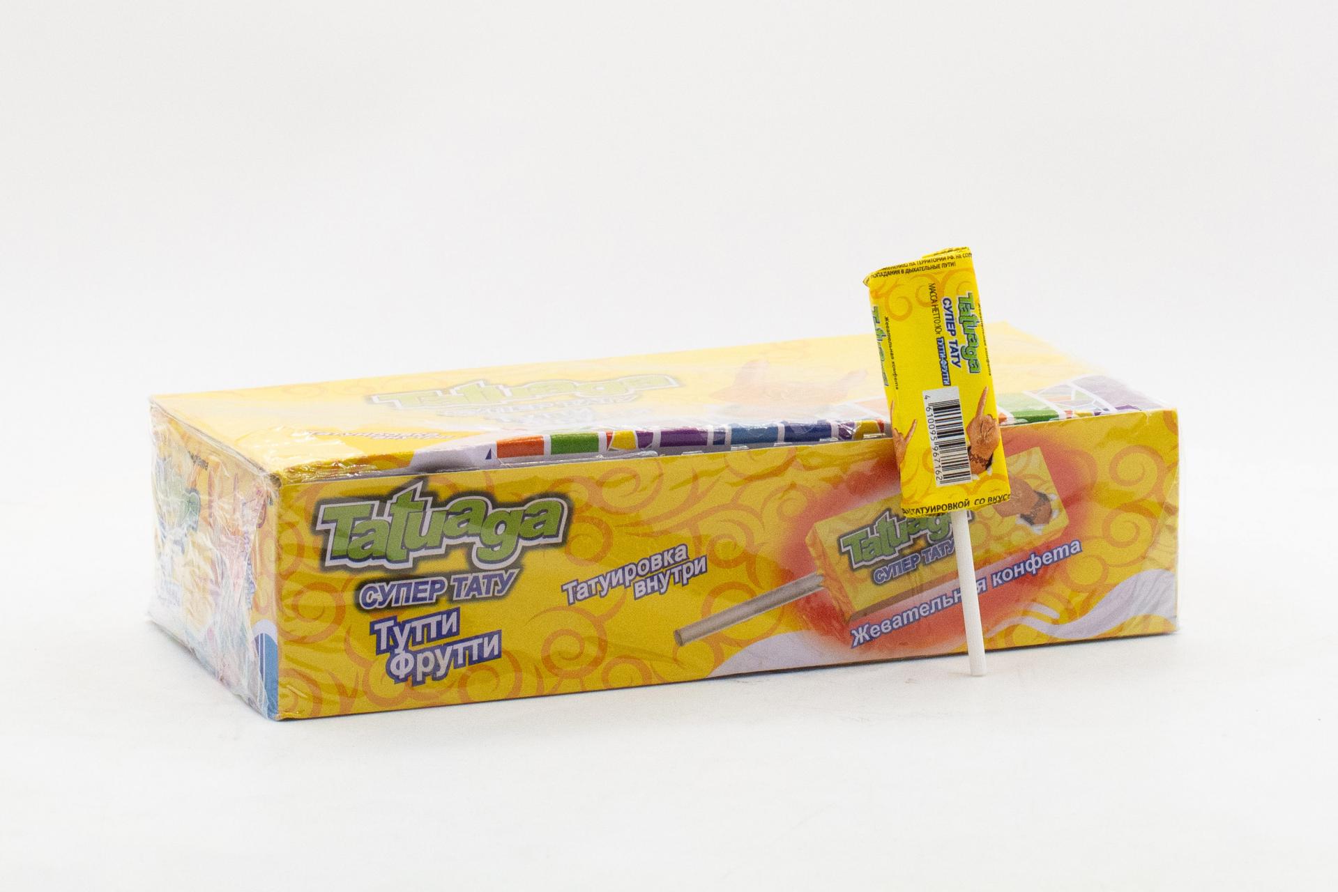 Жевательная конфета на палочке Tatuaga с тату Тутти-Фрутти (Пакистан) 10г0,00 руб. за штуку (в упак. 50 шт.) |